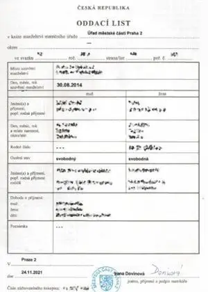 - Sworn translations of Czech documents into all major European and Asian languages, for submission to foreign courts, immigration authorities and embassies.